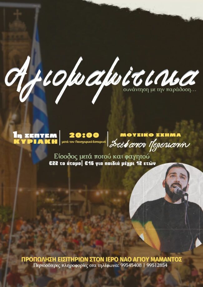 Αγιομαμίτικα. 1η Σεπτεμβρίου 2024 Κυριακή Ώρα 20.00.